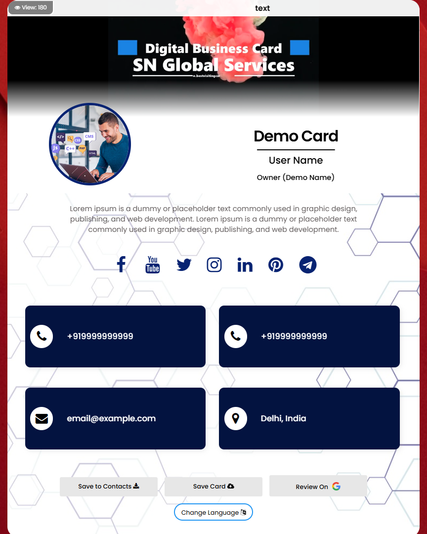 Create your account and Design your digital visiting card.